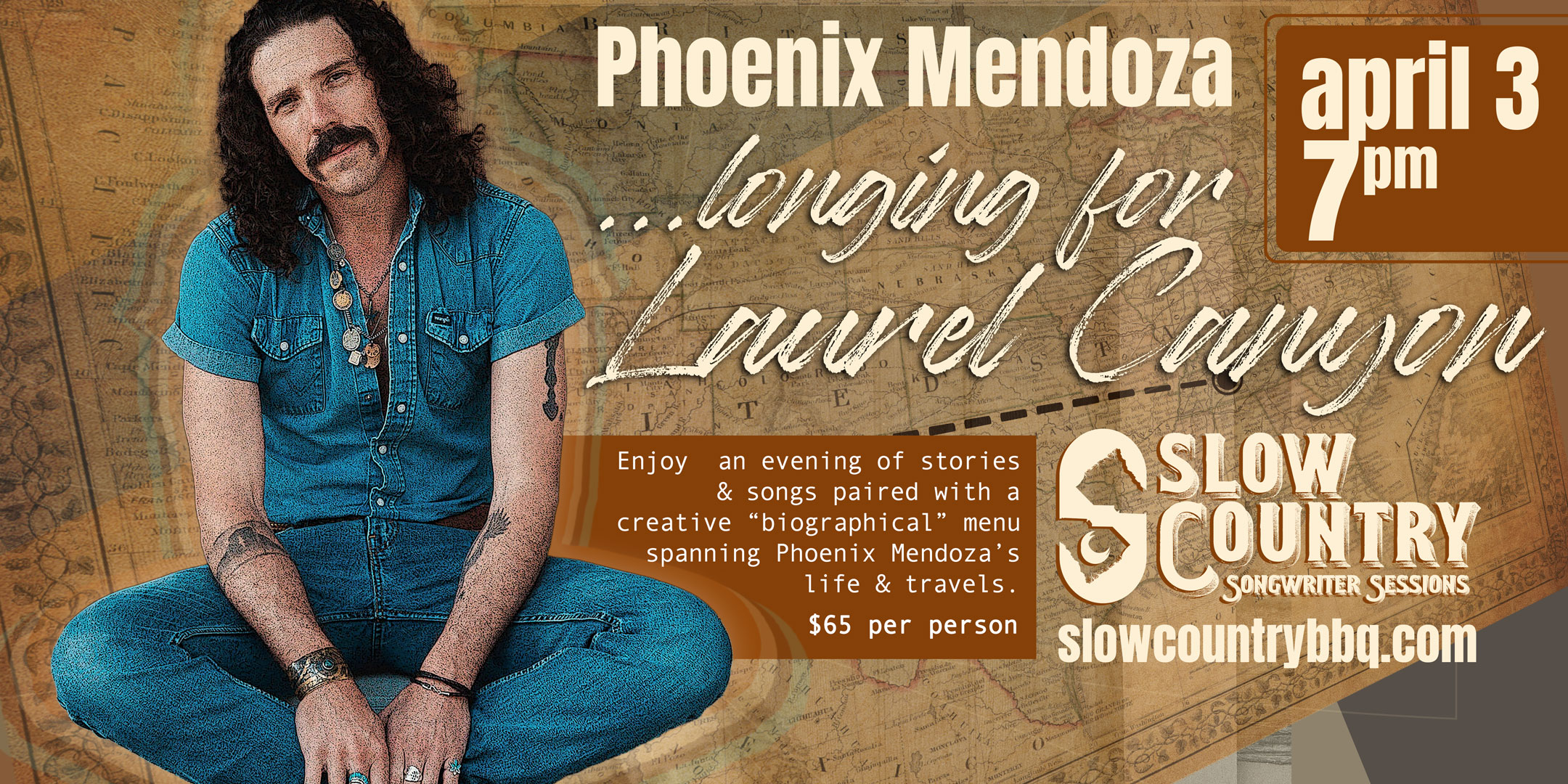 Enjoy an evening of stories & songs paired with a creative “biographical” menu spanning Phoenix Mendoza’s life & travels. $65 per person, includes live music and a delectable 3-course meal. Beverages and gratuity not included.